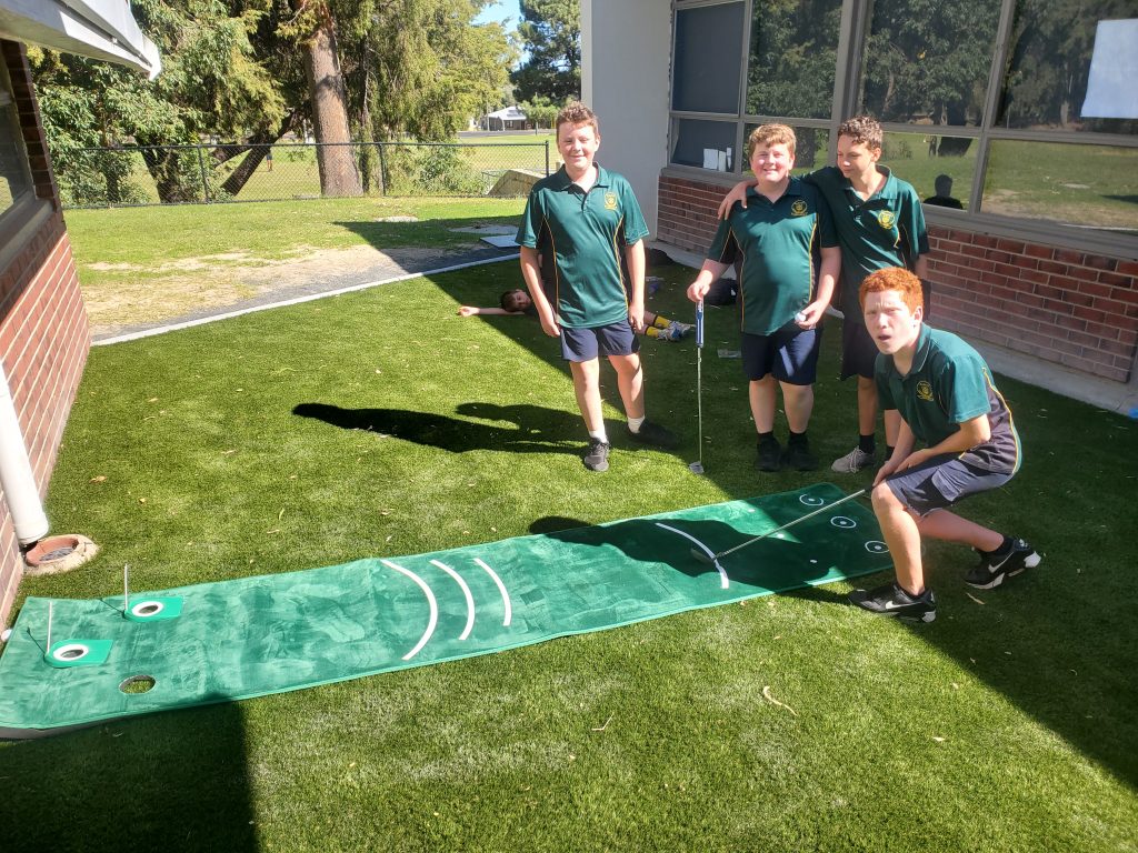 Staff and students have completed a mini golf project. Donations of putters and balls from Harvey Golf Club and a mini golf mat donated by Korbyn Hart has given students and staff something to look forward to at recess and lunch.